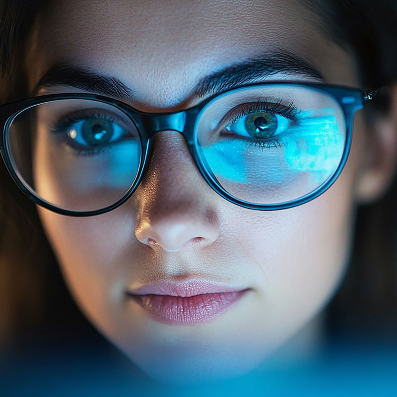 - Blue light–filtering lenses or coatings for enhanced comfort